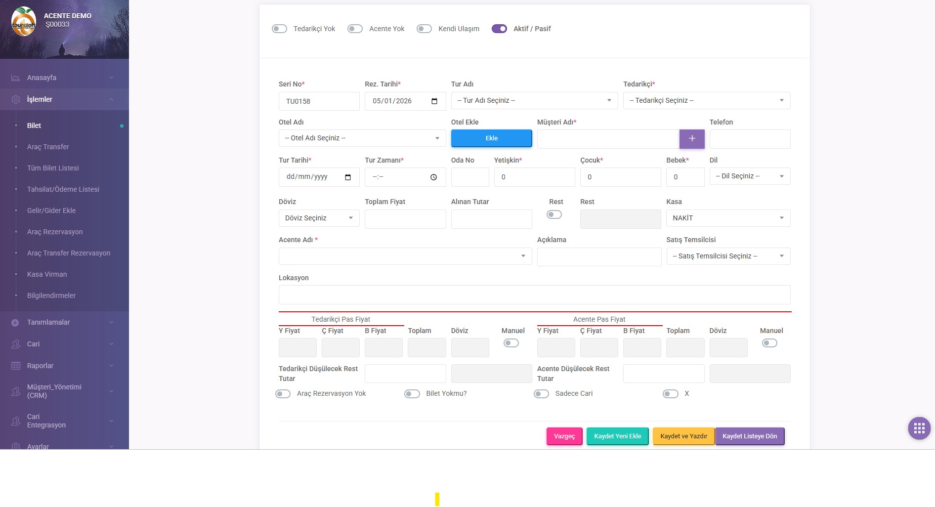 ✅ Tur ve bilet yönetimi