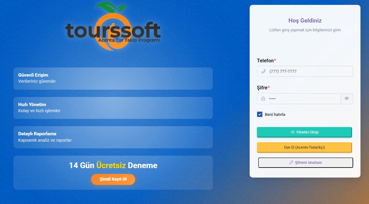Acentalar için geliştirdiğimiz Yapay Zeka Destekli Tur Takip Sistemi – ToursSoft, tüm tur operasyonlarınızı tek merkezden yönetmenizi sağlar.